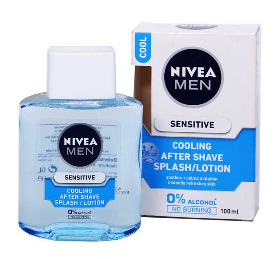 NIVEA MEN Sensitive Cooling After Shave Lotion. It has 0% ALCOHOL* and hence there is NO BURNING on application. It soothes skin irritations and improves its condition over time. Additionally, it gives a gentle cooling sensation with a refreshing feel with every use. WHAT DO YOU GET? The new Sensitive Cooling After Shave Lotion with 0% alcohol* cools down shaved skin without burning. The formula with Chamomile and Seaweed extracts is non-greasy, non-sticky and fast absorbing. Calms and soothes skin irritations after shaving. Instantly refreshes the skin leaving a comfortable cooling sensation. Alleviates skin redness and dryness. * 0% ALCOHOL implies no Ethylalcohol HOW IT WORKS Skin feels comfortably cooled. Skin looks healthy and cared for. Instantly soothes and calms your irritation, lasting cool and calming sensation, 0% alcohol, no burning, non-greasy, non-sticky and fast absorbing fresh formula, dermatologically approved by men with sensitive skin.